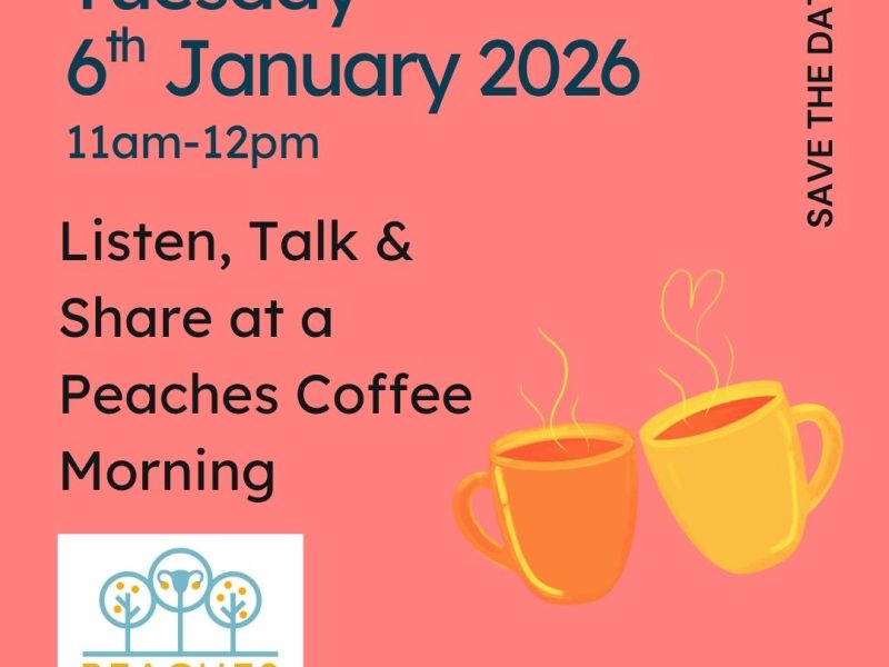 Tuesday 6th January, 11am-12 noon, online Listen, talk and sharePeaches Coffee Morning Support Group aims ...
