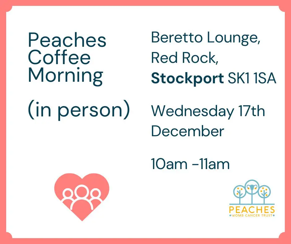 Peaches are excited to announce the latest of our in-person coffee mornings. Held on Wednesday, 17th November at Beretto Lounge in Stockport, this get-together is hosted by our clinical nurse specialist, Cath. It promises to be a lovely opportunity to meet others with similar experiences to talk, listen, ask questions, share stories and tips with people who understand.